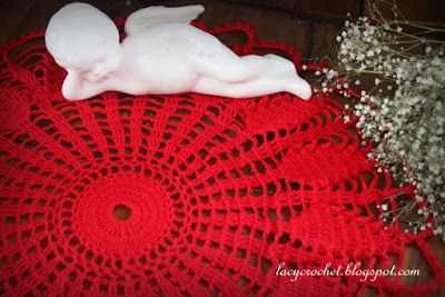 I've done one so far - this red doily. I already have a collection of Valentine's Day doilies, but I couldn't help and make one more.