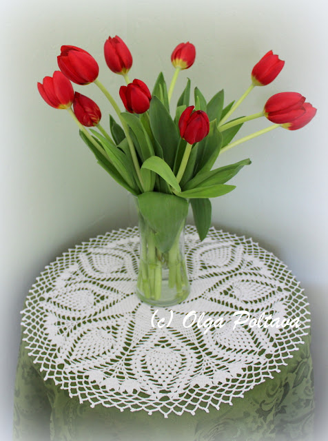 That's a lovely doily, Olga:) Thanks for sharing ! Those tulips look beautiful. Are those from your garden?