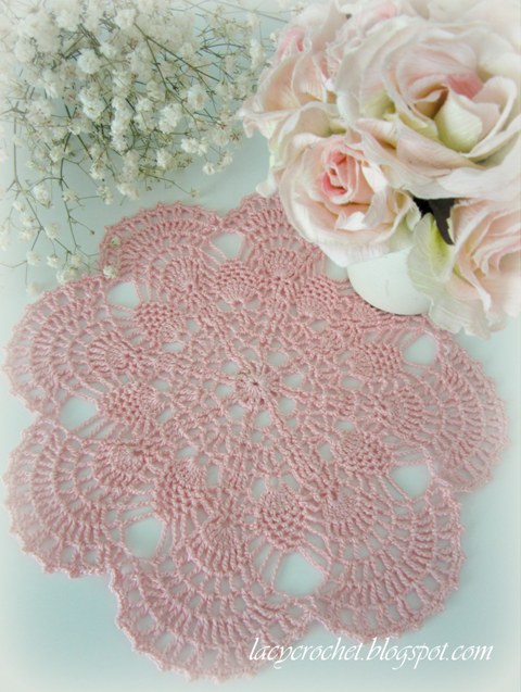 The original pattern was from Panda Crochet. It’s called Small Exchange Doily (see in the list of free patterns) and it was very pretty in the original pattern. Too bad mine didn’t work out!