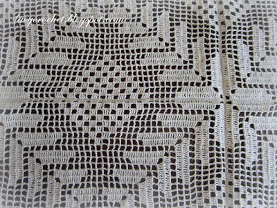 17th Round. Sl st into shell, ch 3, 1 d c, ch 2, 2 d c in same space, ** ch 3, s c in 1st loop of pineapple, * ch 3, s c in next loop, repeat from * 3 times, ch 3, shell in next shell, ch 2, 1 tr c, ch 3, 1 tr c in next loop, ch 2, shell in next shell, repeat from ** all around ending round tocorrespond, join.
