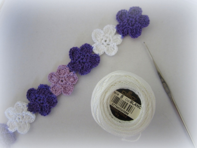Next I used DMC size 8 pearl cotton thread and size 10 steel hook to connect all the petals with ch 9 loops.