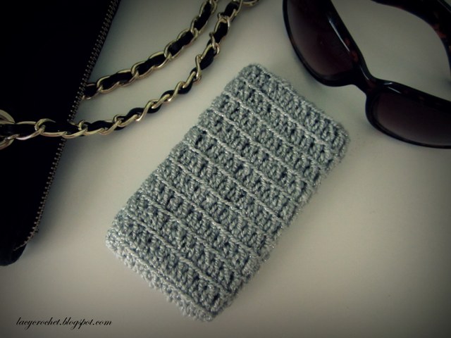 As I was crocheting it, I thought of making a flap with a button, but then I thought by the time I manage to unbutton it, I will probably miss the call. So I kept it as a simple small bag. I also wanted to decorate it with a small flower, but I changed my mind about that as well. I must say I like its simple look. The yarn has a metallic strand, which adds a bit of sparkle to the case. Good enough for me!