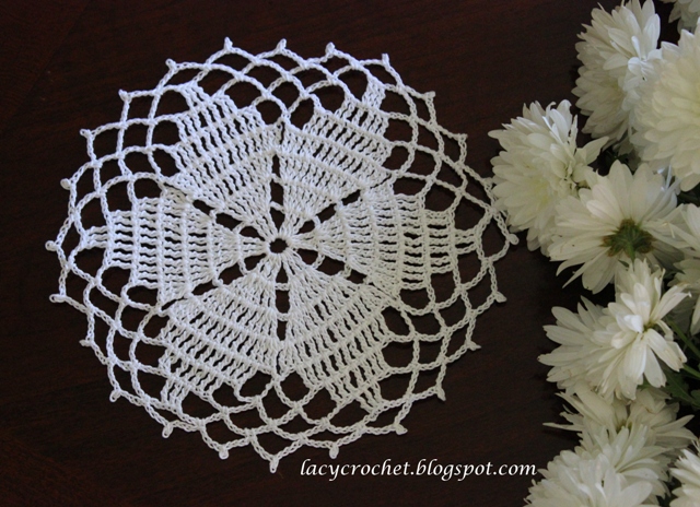 This doily measures about 7 inches in diameter (across). I
