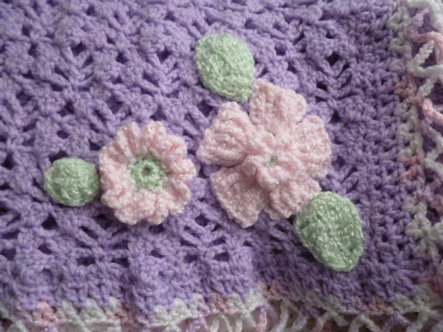 And she was very creative and come up with a beautiful wide border and added some flowers and leaves to the blanket.