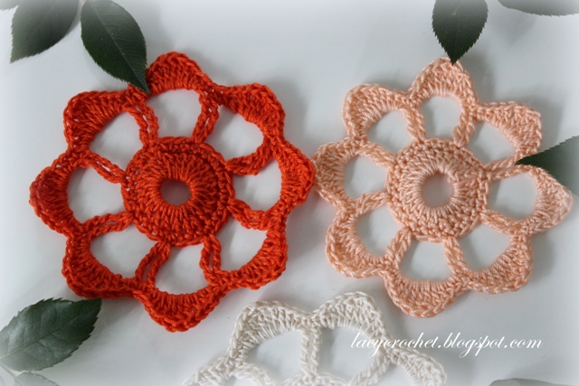 different sizes. Also the place where the petals are attached with a slip stitch